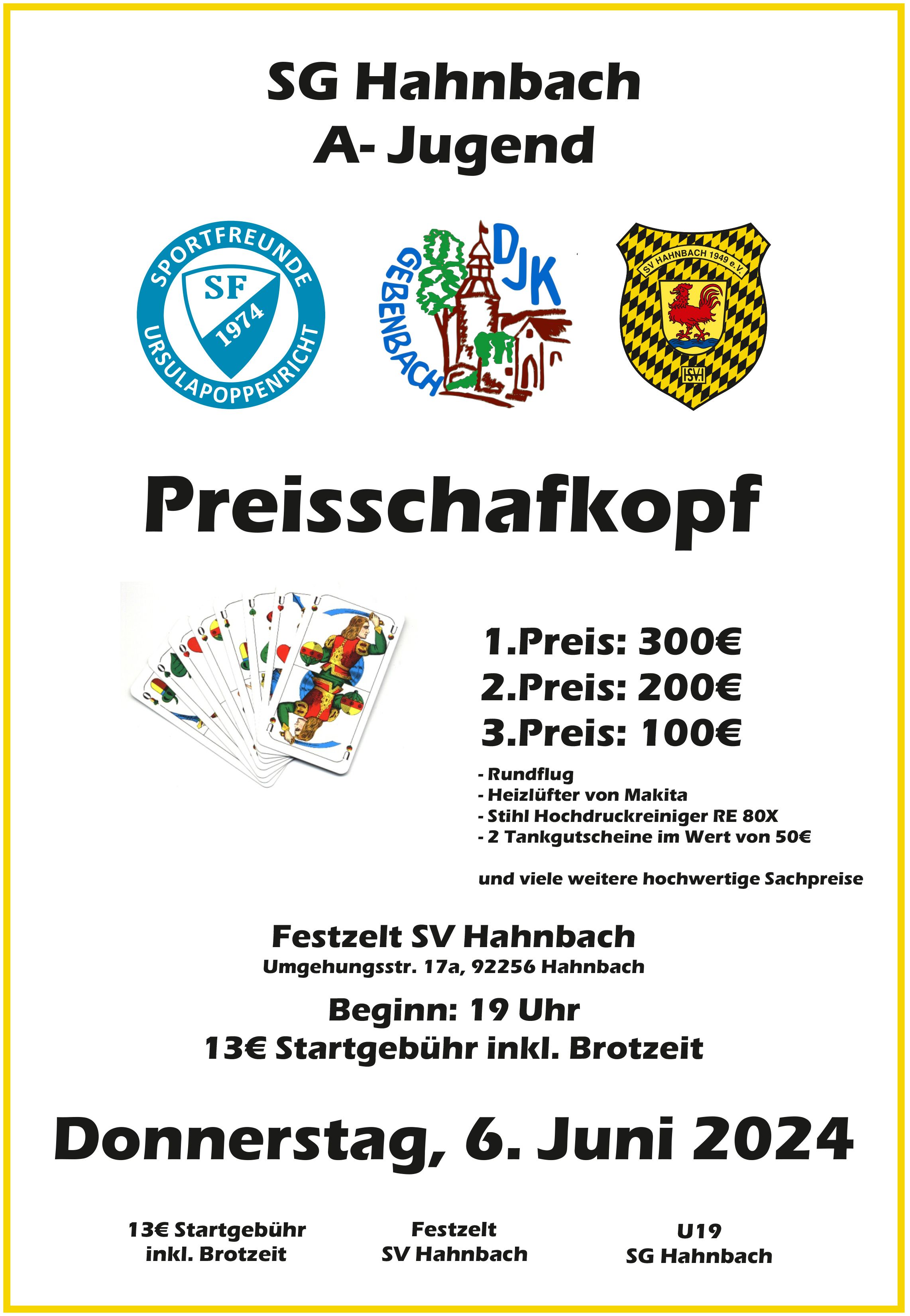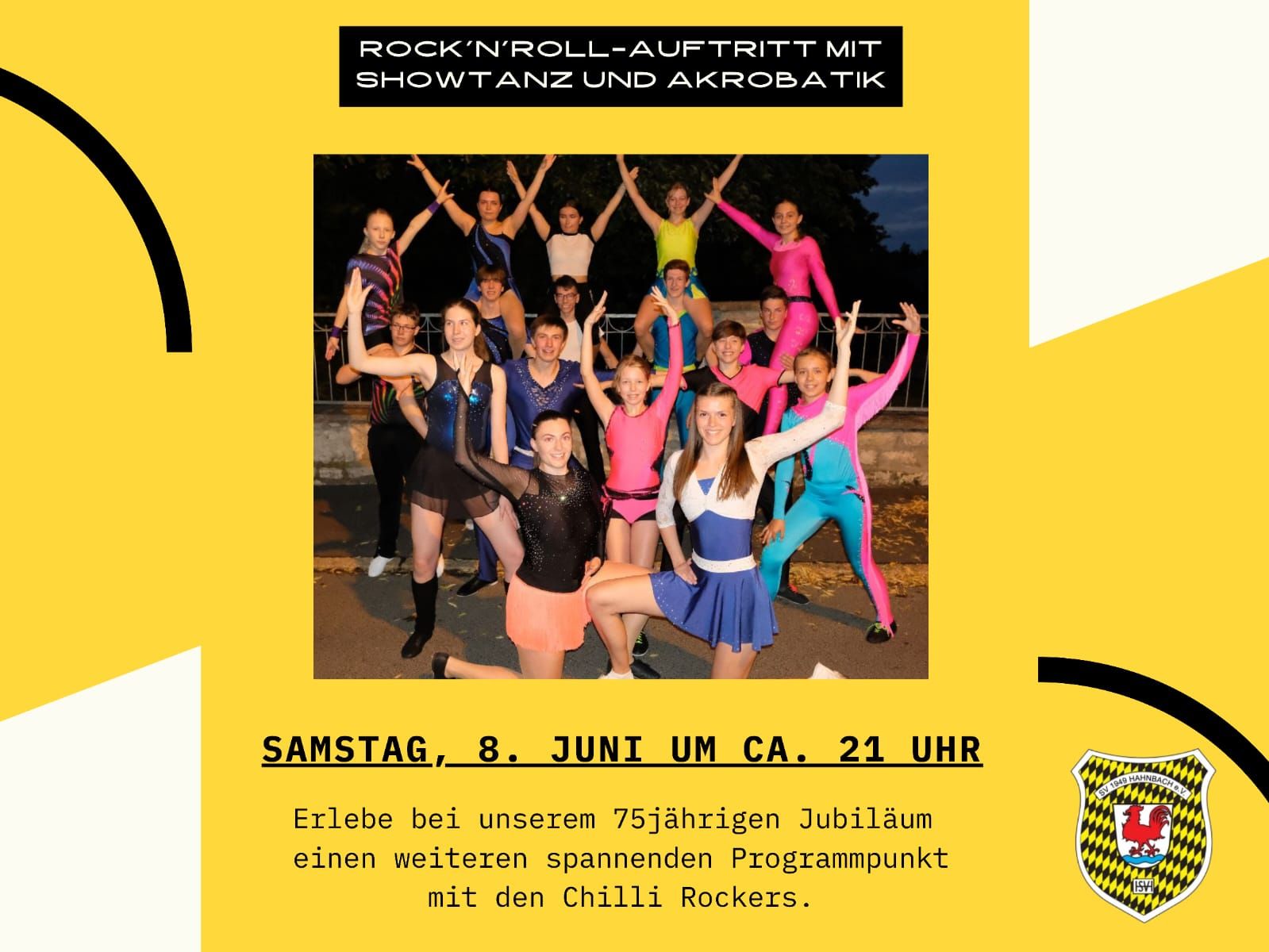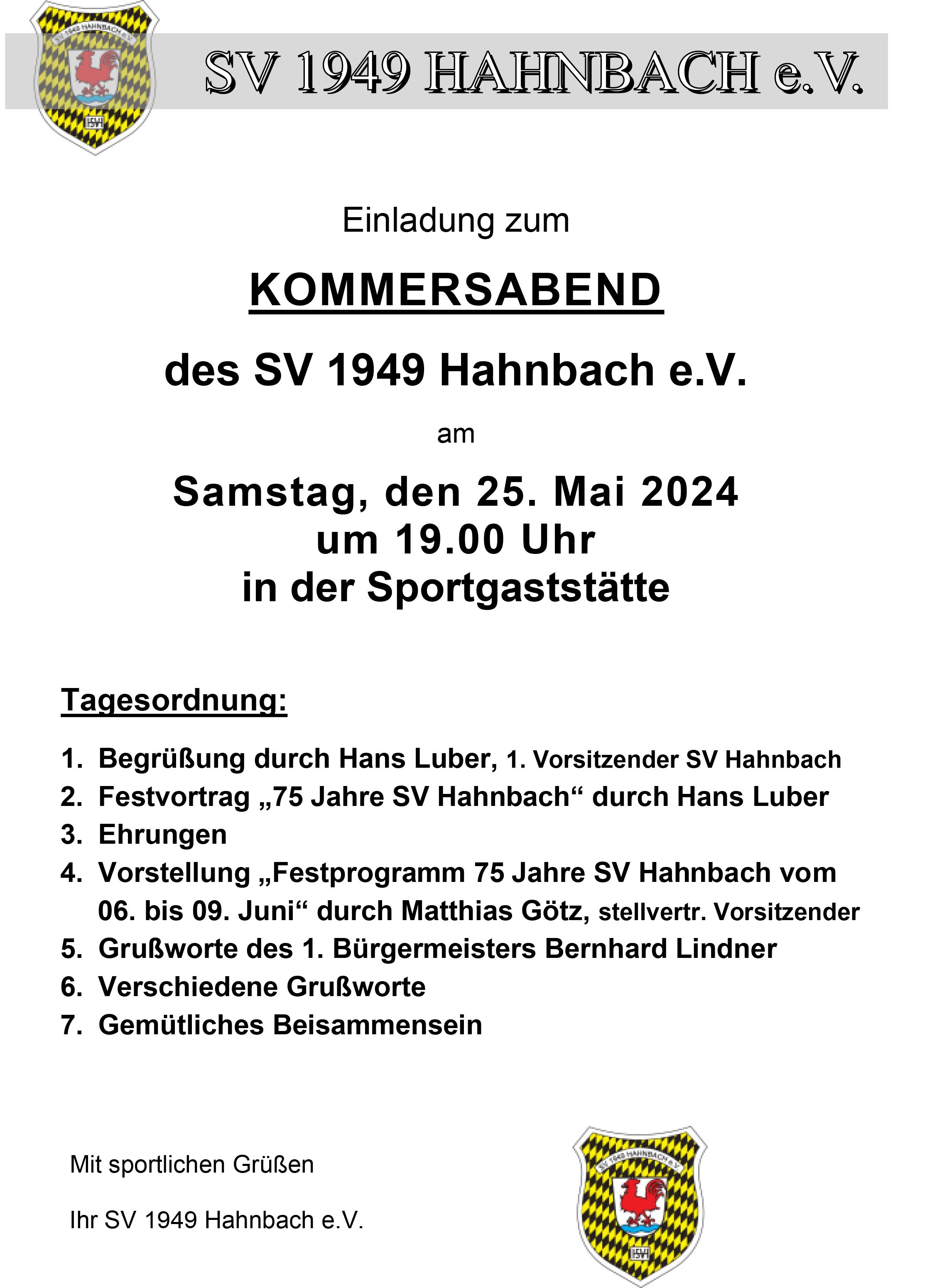 Vom 06. - 09. Juni 2024 feiert der Sportverein 1949 Hahnbach e.V. sein 75 Jähriges Vereinsjubiläum. Veranstaltungsort ist das Sportgelände in Hahnbach (Josef Trösch Sportanlage).