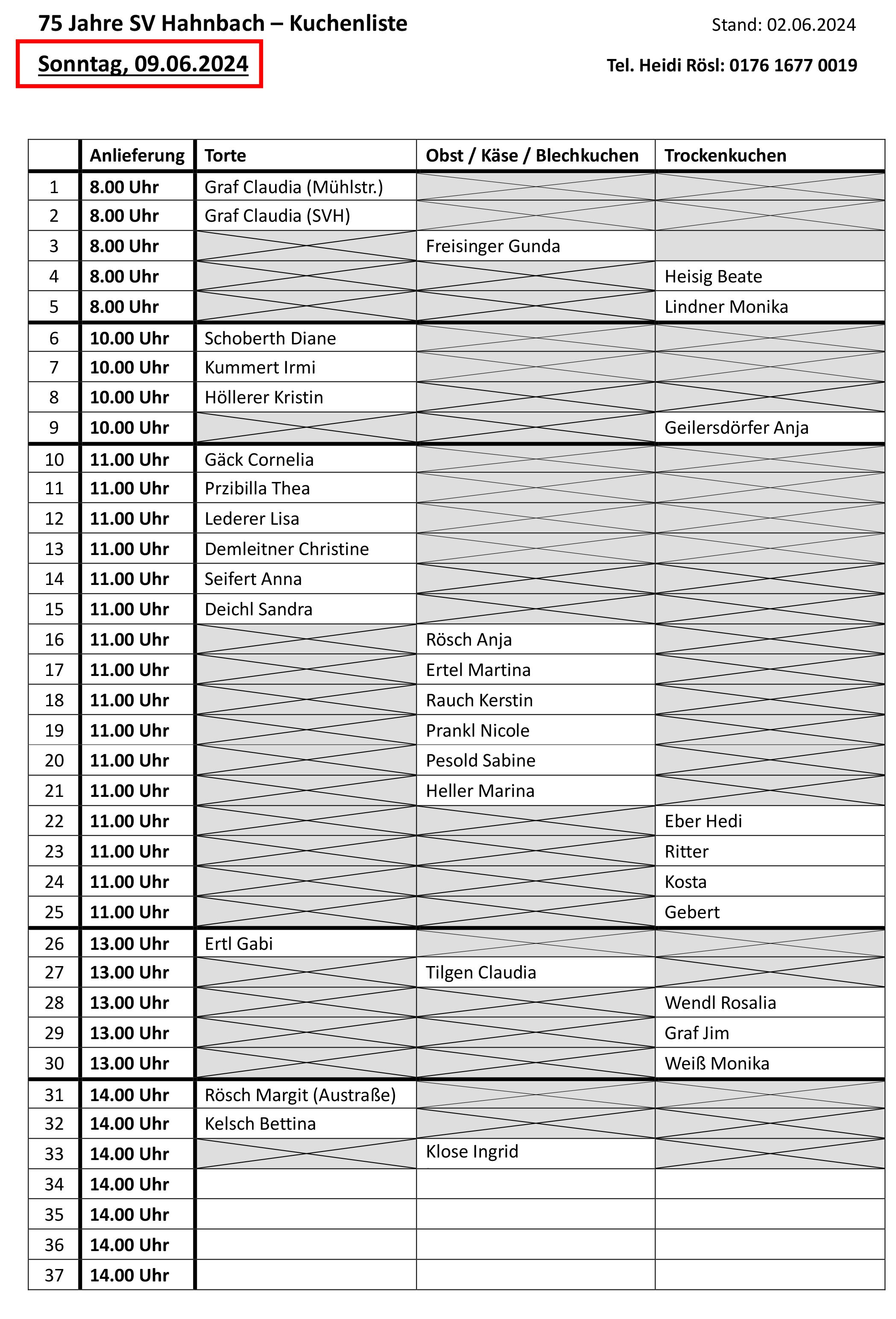 Kuchenliste 75 Jahre SV 1949 Hahnbach e.V.